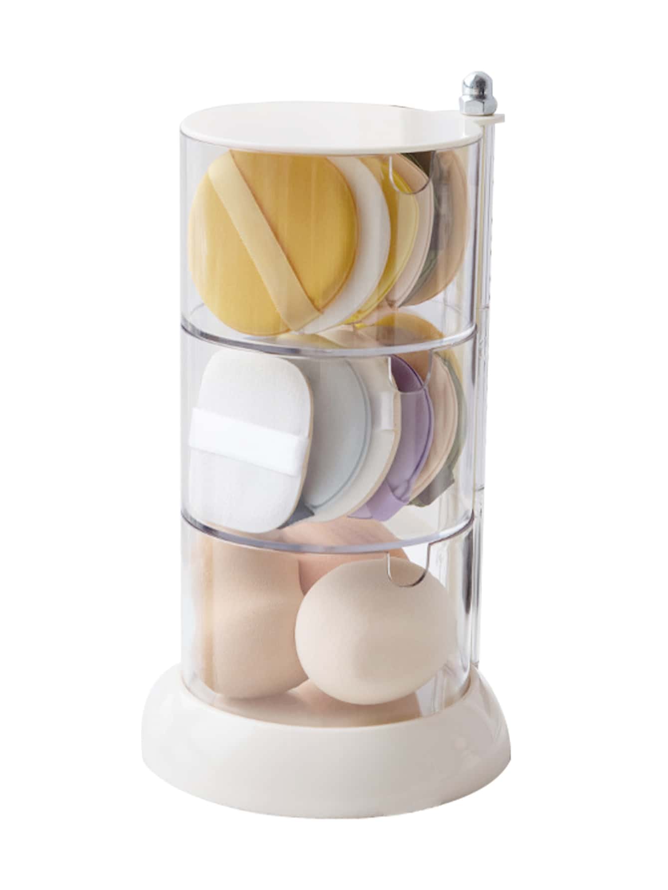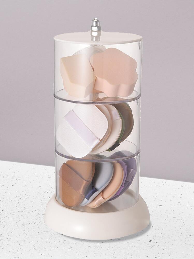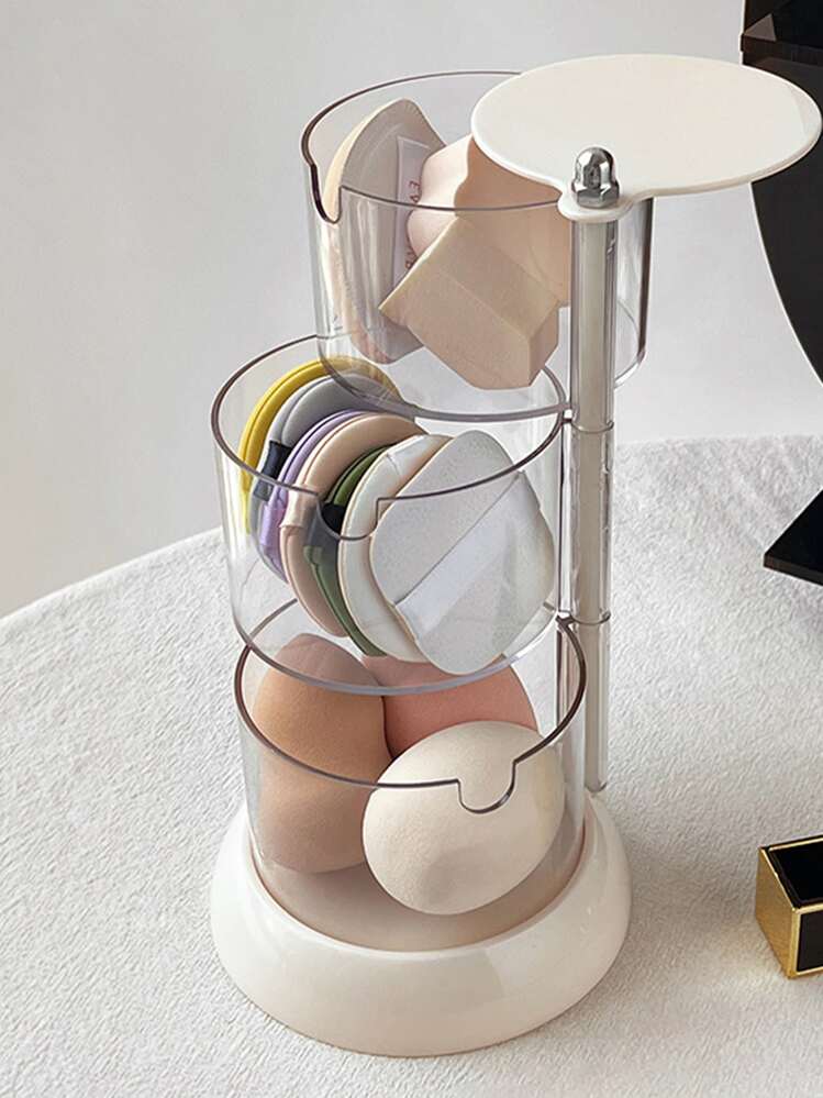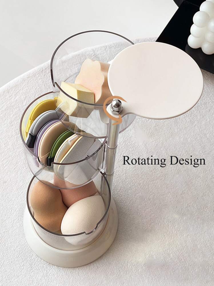 قطعة واحدة منظم مكياج بلاستيك شفاف يدور ومضاد للغبار متعددالطبقات،
