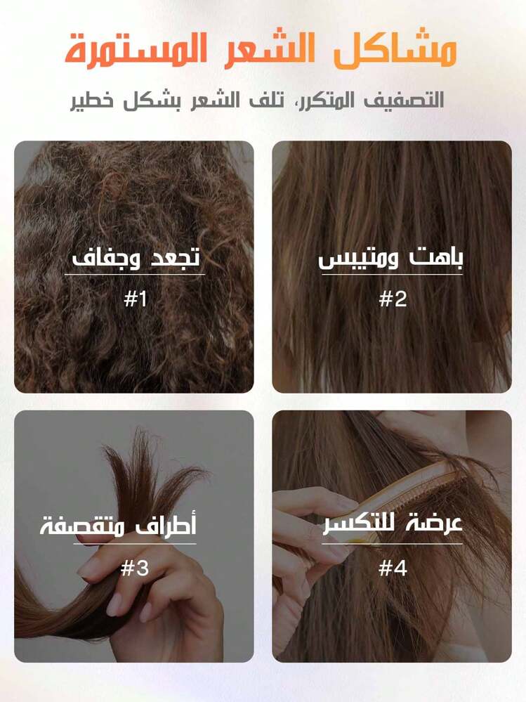 - زيت لحماية الشعر من الحرارة مناسب لجميع أنواع الشعر، بما في ذلك الشعر المعالج كيميائيًا أو المصبوغ.