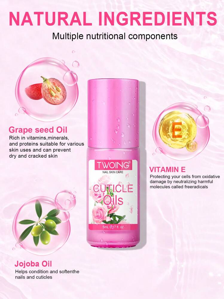 TWOING زيت ورد لتنعيم الأظافر 5مل, زيت طبيعي يحتوي على بذور الجوجوبا ، زيت بذور العنب ، فيتامين E وم